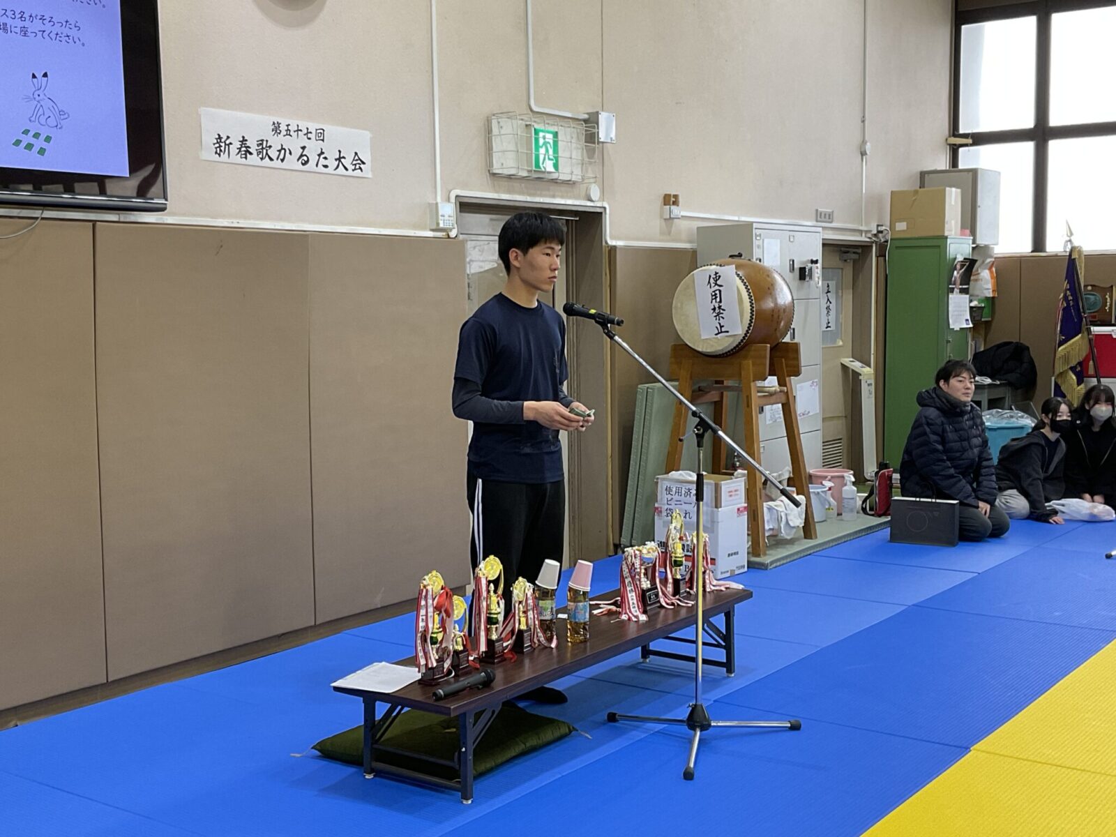 2026.01.08 競技かるた部 26.01.08新春歌かるた大会 毎年恒例の学校行事、新春歌かるた大会。クラス対抗の大会です。 かるた部員は選手として出場するのはもちろん、読手や審判などの運営にもまわります。 空札なし・払い手禁止のルールで意外と苦戦します。 Posts navigation 前の記事 25.12.07愛知大会A級 結果報告次の記事 26.01.10全国高校生かるたグランプリ京都府代表メンバー決定!